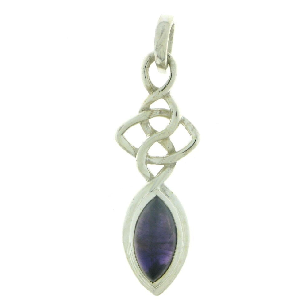 The silver pendant has a cabouchon cut gemstone. The shape of the gemstone is marquise with a size of 12 x 6 mm.