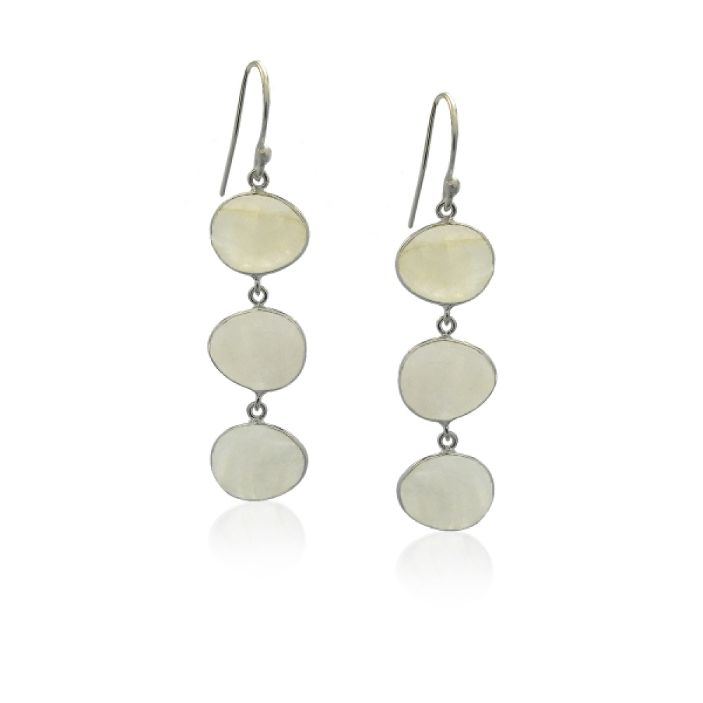 The silver earrings have three faceted cut gemstones. The shape of the gemstones are oval with a size of 11 x 9 mm.