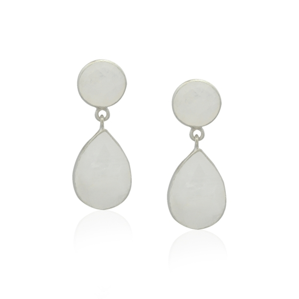 The silver studs have two faceted cut gemstones. The shape of the gemstones are round and drop with a size of 8 mm and 14 x 10 mm.