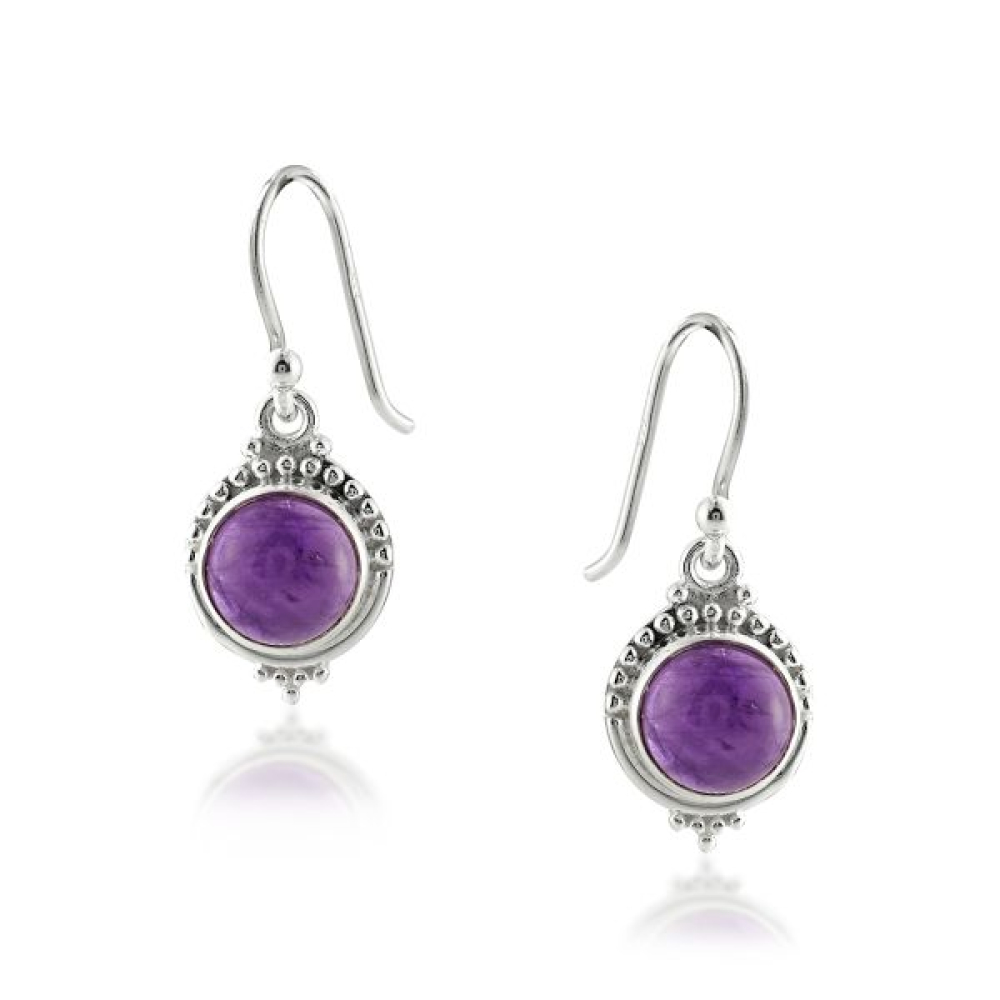 The silver pendant has a cabouchon cut gemstone. The gemstone has a round shape with a size of 7 mm