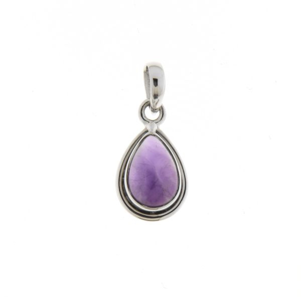 The silver pendant has a cabouchon cut gemstone. The gemstone is drop shaped with a size of 10 x 7mm.
