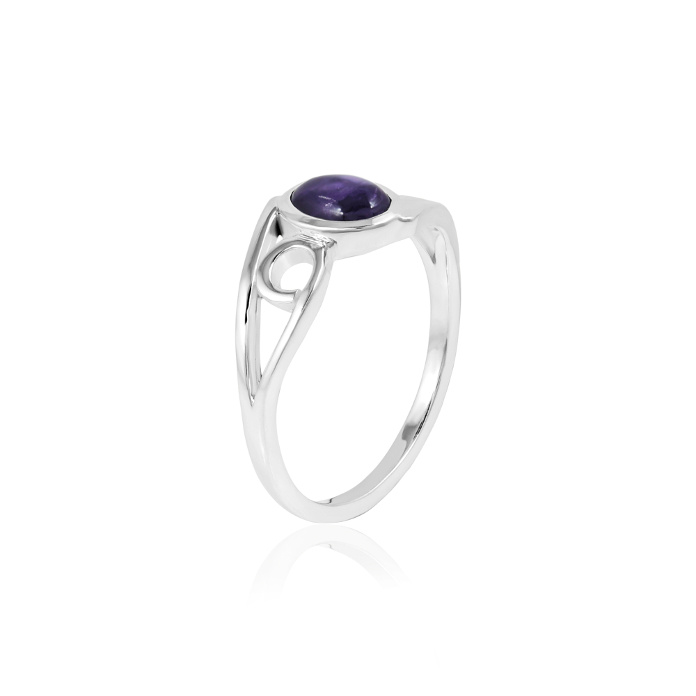 The silver ring has a cabouchon cut gemstone. The gemstone has an oval shape with a size of 6 x 4 mm.