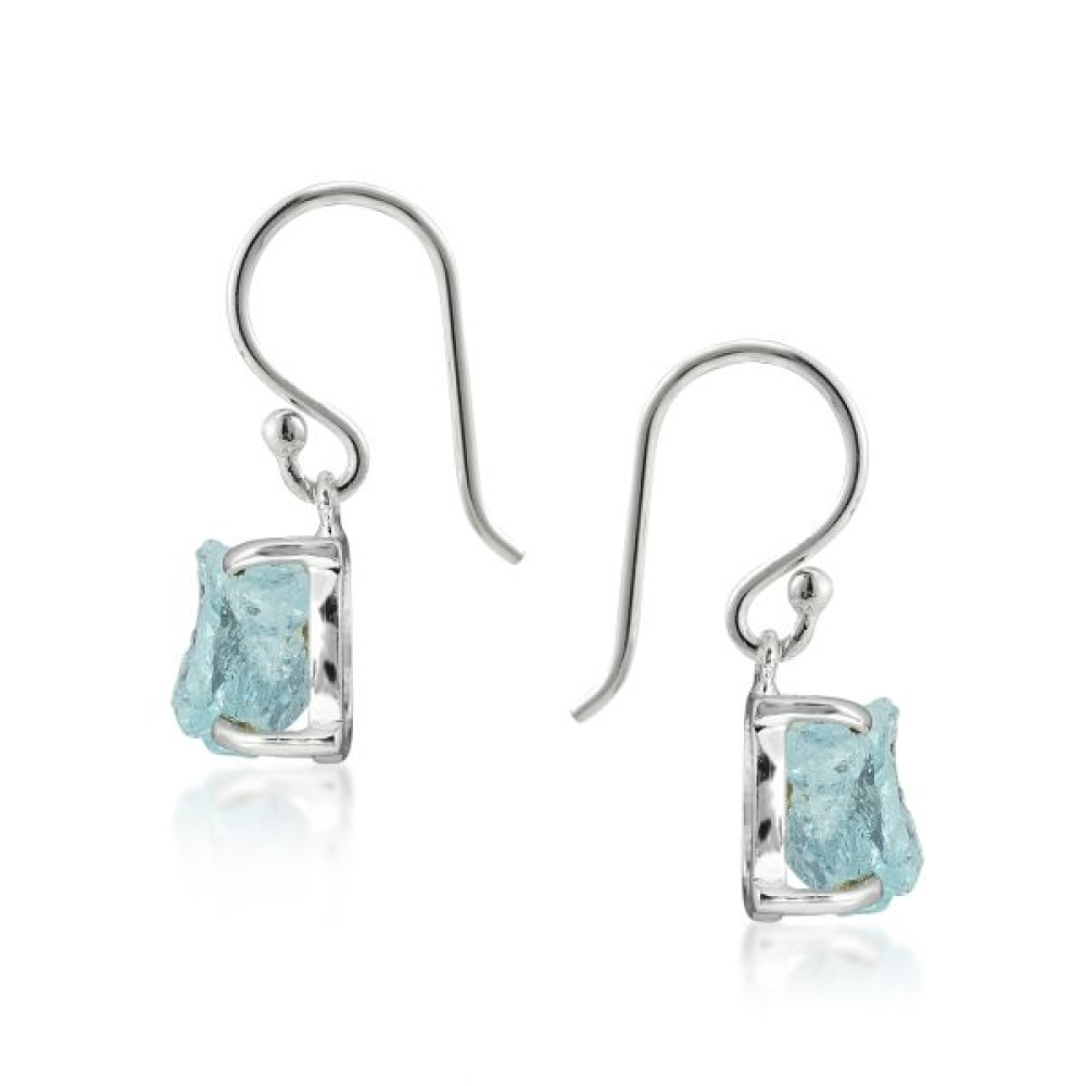 The silver hanging earrings have rough gemstones. The shape of the gemstones are oval with a size of 10 x 8 mm.