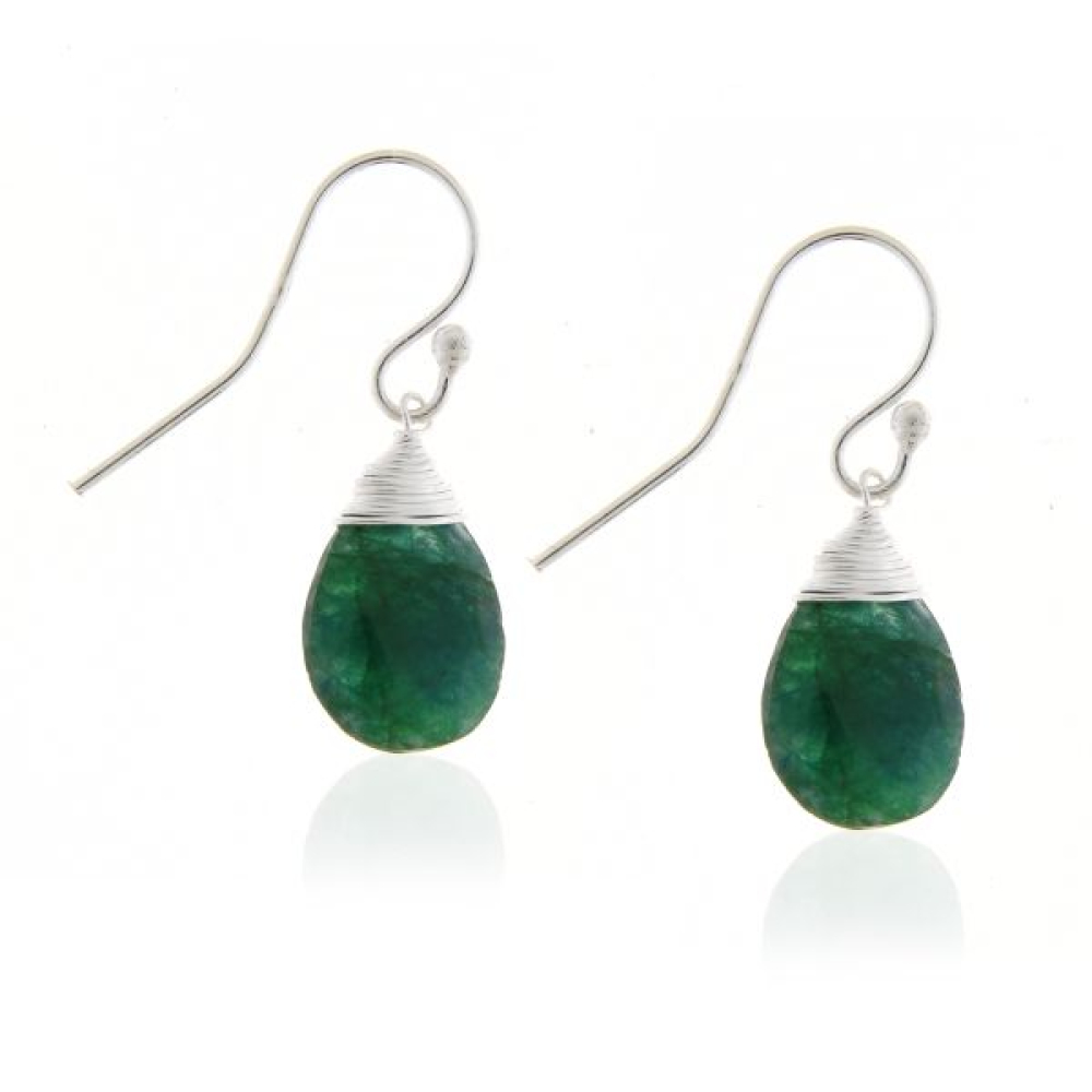 The silver hanging earrings have faceted cut gemstones. The shape of the gemstones are drop shaped with a size of 14 x 10 mm.