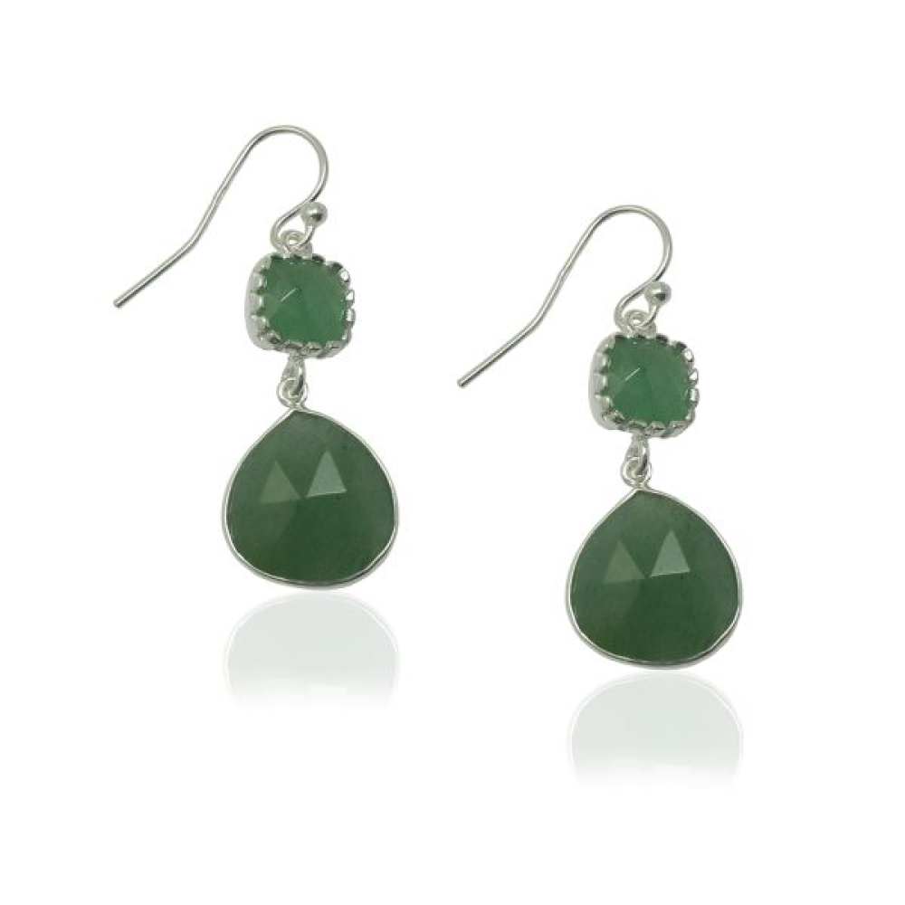 The silver earrings have faceted cut gemstones. The gemstones have a square form 8 x 8 mm and a drop shaped with a size of 14 x 14 mm.