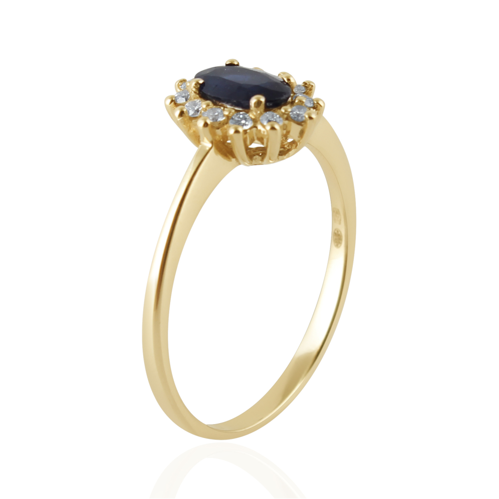 The 14 carat golden ring has a faceted cut gemstone. The shape of the gemstone is oval with a size of 6 x 4 mm.