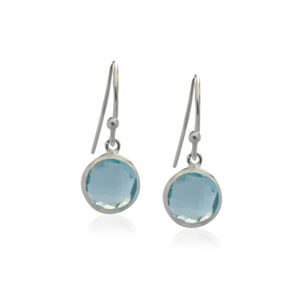 The silver hangings earring have faceted cut gemstones. The gemstones are round, with a size of 8 mm.