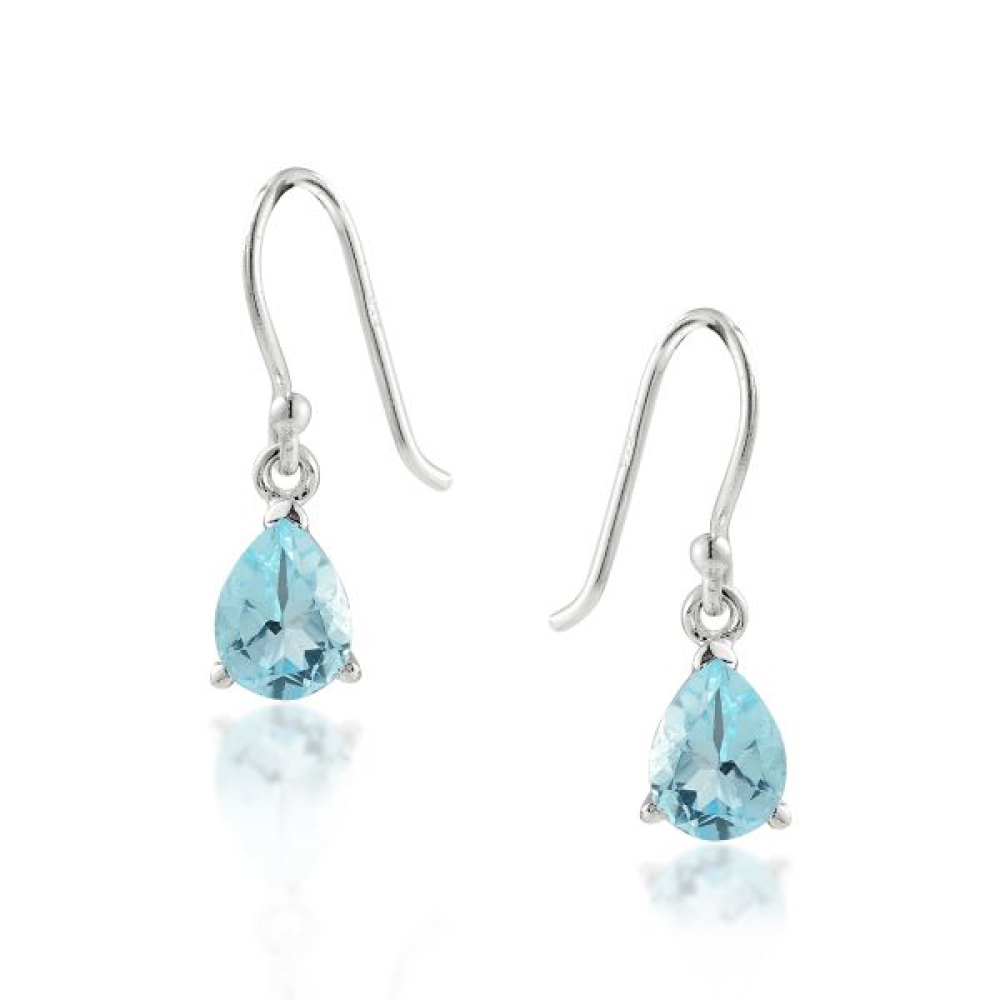 The silver hanging earrings have faceted cut gemstones. The gemstone is drop shaped with a size of 8 x 6 mm.