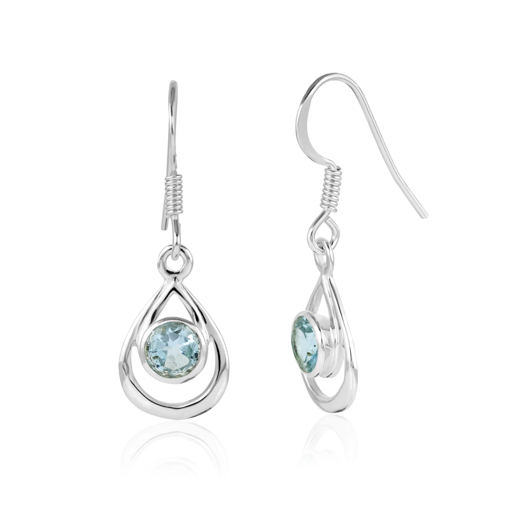 The silver hangings earring have faceted cut gemstones. The gemstones are round, with a size of 5 mm.