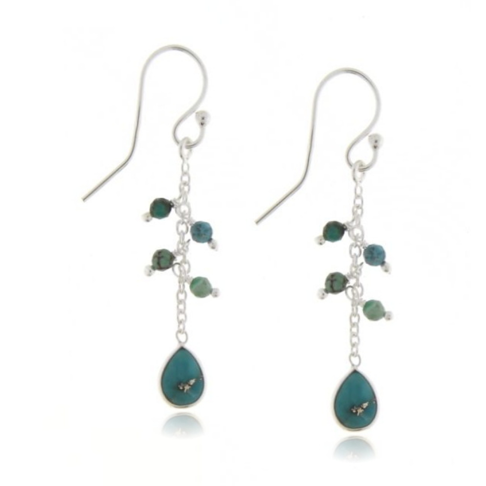 The silver hanging earrings have faceted cut gemstones. The shape of the gemstone is drop shaped with a size of 7 x 5 mm.