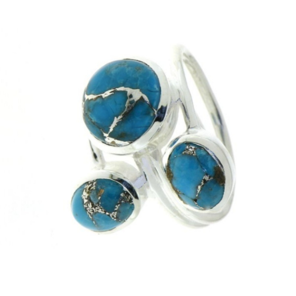 The silver ring has faceted cut gemstones.The shape of one of the gemstones is round with a size of 10 mm and oval with a size of 8 x 6 mm.
