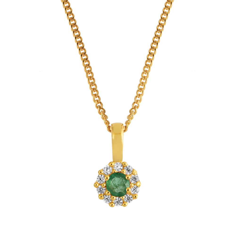 The 14 carat golden pendant has a faceted cut gemstone. The shape of the gemstone is round with a size of 3 mm. Comes without gold chain