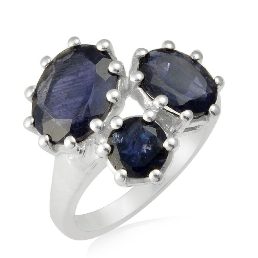 The silver ring has faceted cut gemstones. The shape of the gemstones are round and oval with a size of 6 mm, 8 x 6 mm and 10 x 8 mm.