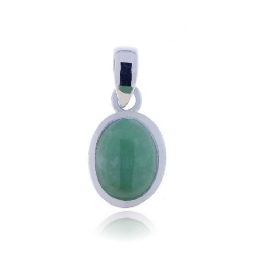 The silver pendant has a cabouchon cut gemstone. The gemstone has an oval shape with a size of 10 x 8 mm.