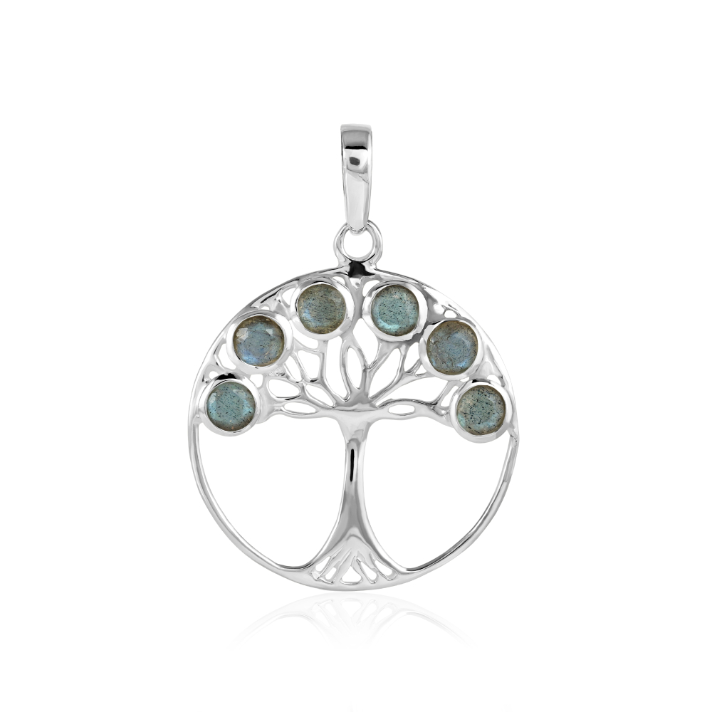 The silver three of life pendant has a faceted cut gemstone. The shape of the gemstone is round with a size of 6 mm.