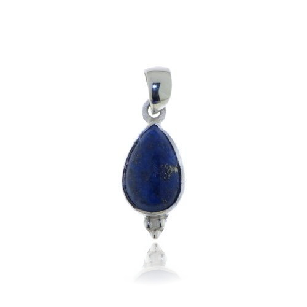 The silver pendant has a cabouchon cut gemstone. The gemstone is drop shaped with a size of 12 x 8 mm.