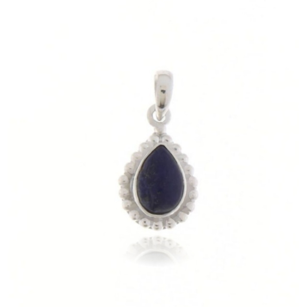 The silver pendant has a cabouchon cut gemstone. The gemstone is drop-shaped with the size 9 x 7 mm.