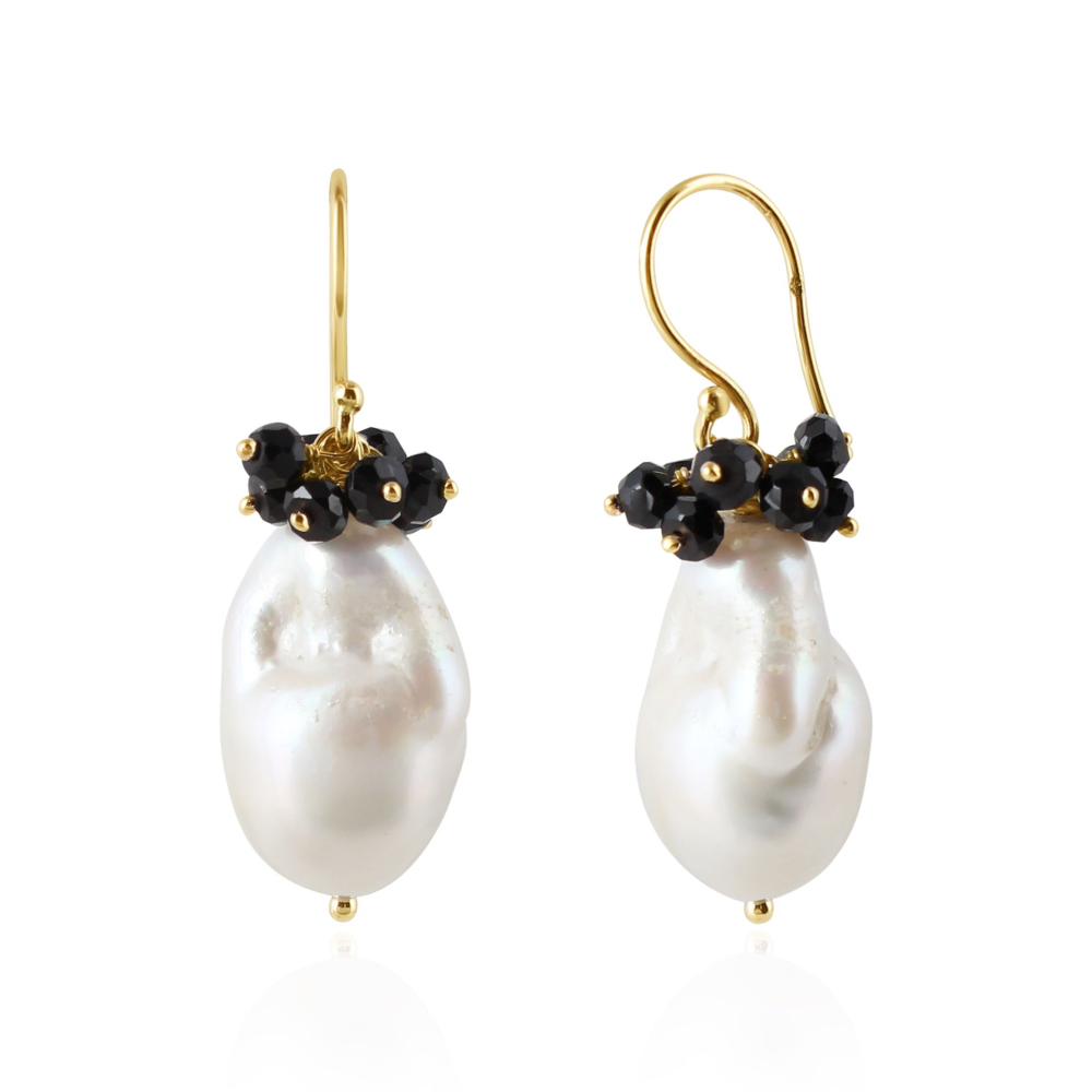 The 14 carat golden hanging earrings with faceted cut Onyx. The shape of the pearls are drop shaped with a size of 18 x 12 mm.