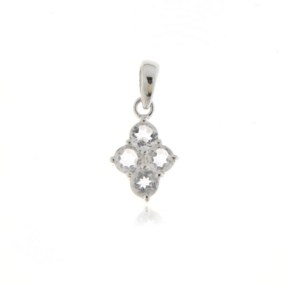 The silver pendant has faceted cut gemstones. The shape of the gemstones is round with a size of 4 mm.