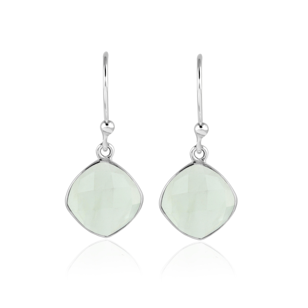 The silver hangings earring have faceted cut gemstones. The gemstones are square with a size of 10 x 10 mm.