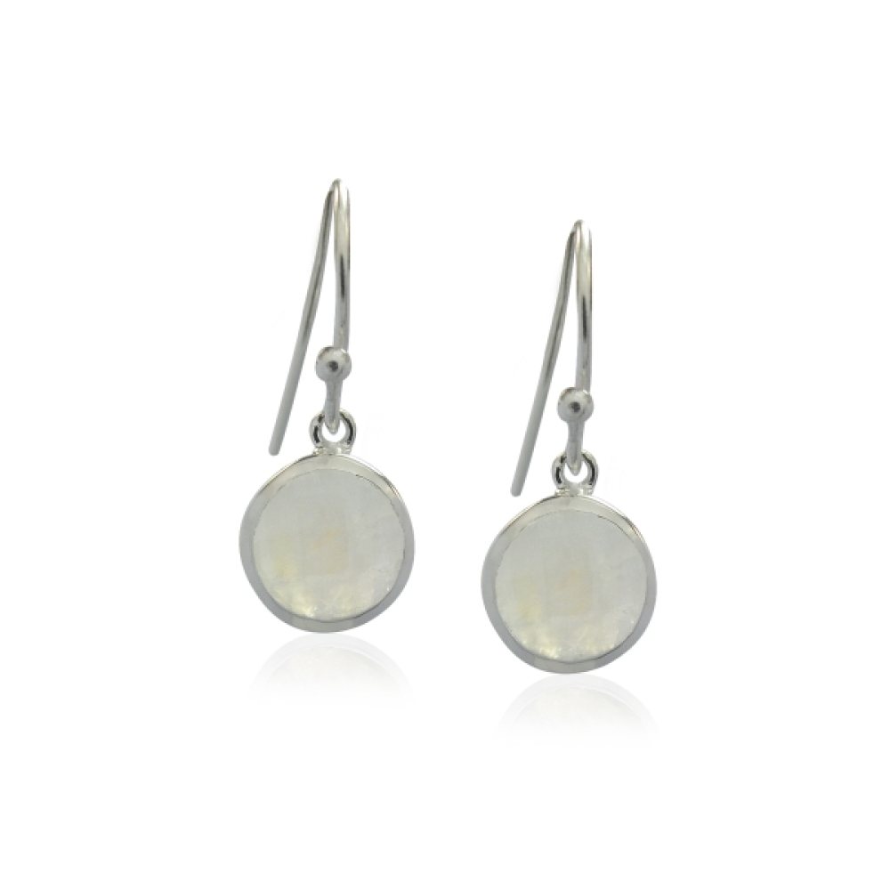 The silver hangings earring have faceted cut gemstones. The gemstones are round, with a size of 8 mm.