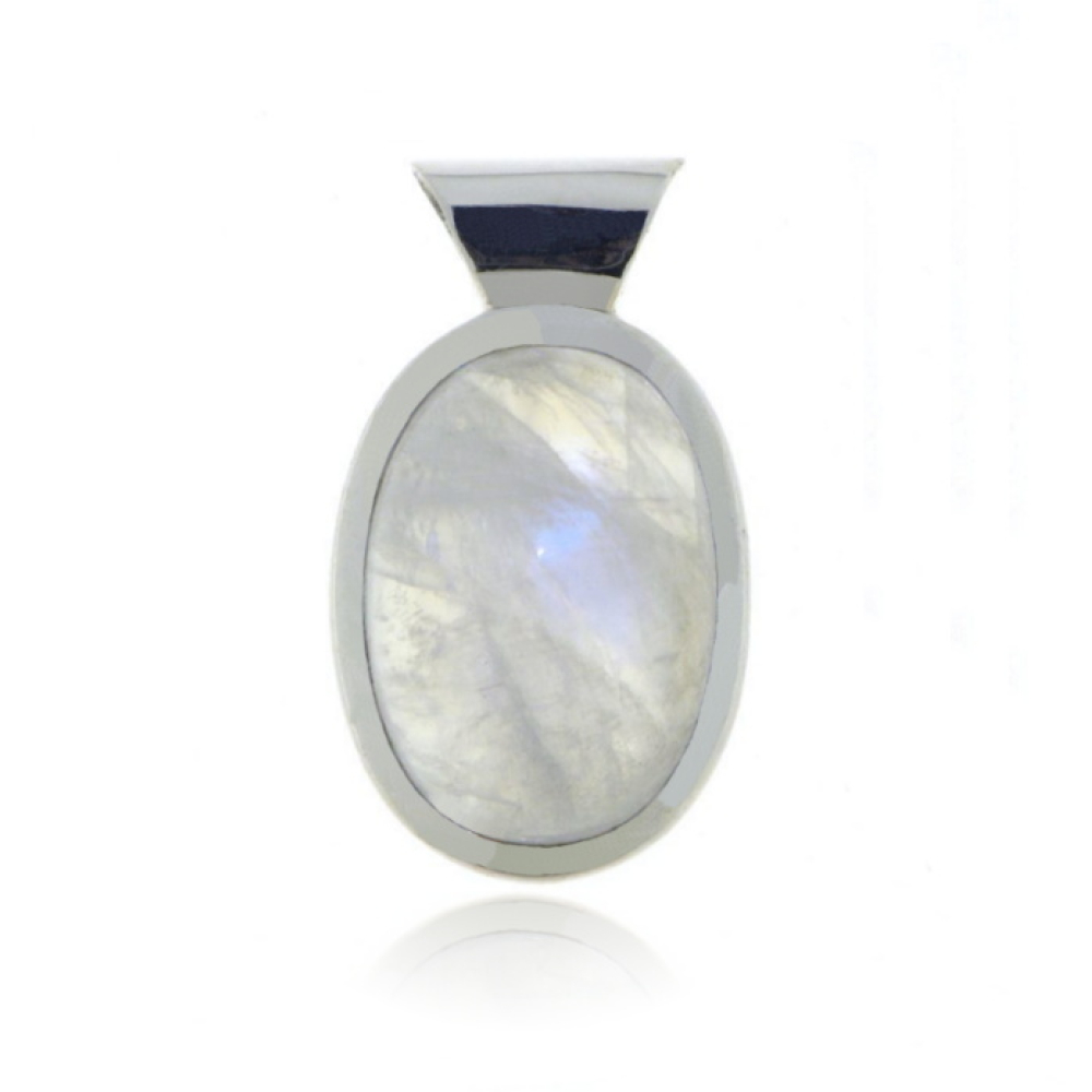 The silver pendant has a cabouchon cut gemstone. The gemstone has an oval shape with a size of 14 x 10 mm.