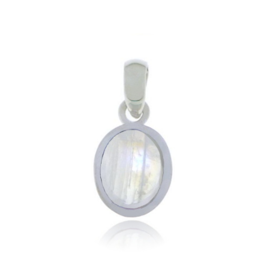 The silver pendant has a cabouchon cut gemstone. The gemstone has an oval shape with a size of 10 x 8 mm.