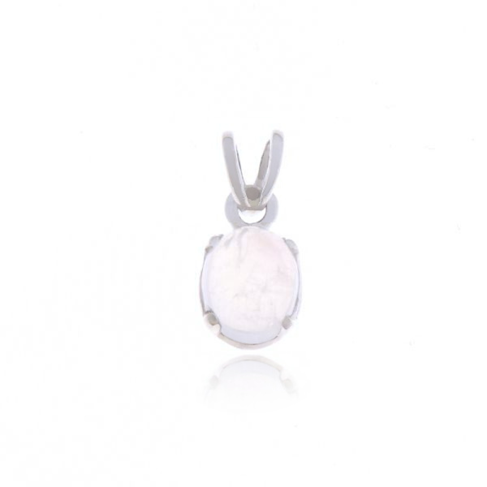 The silver pendant has a cabouchon cut gemstone. The gemstone has an oval shape with a size of 10 x 8 mm.