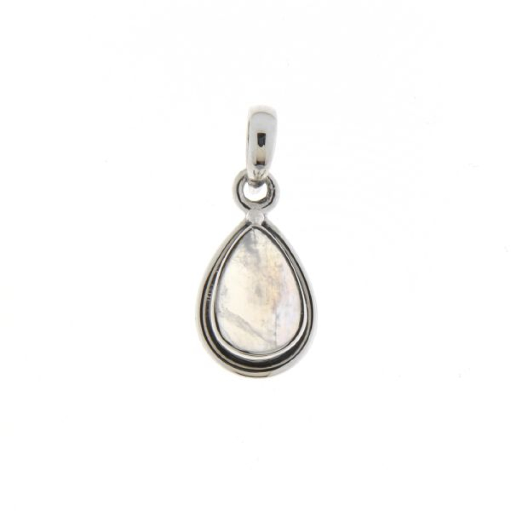 The silver pendant has a cabouchon cut gemstone. The gemstone is drop shaped with a size of 10 x 7mm.