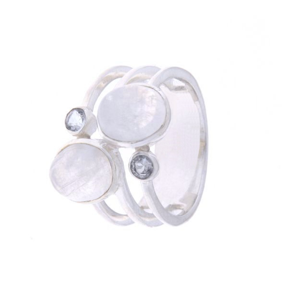 The silver ring has both cabochon and facet cut gemstones . The shape of the cabouchon cut gemstones are oval with a size of 10 x 8 mm and the round faceted cut gemstones are 4 mm.