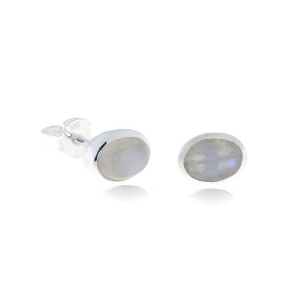The silver studs have cabouchon cut gemstones. The shape of the gemstones are oval with a size of 7 x 5 mm.