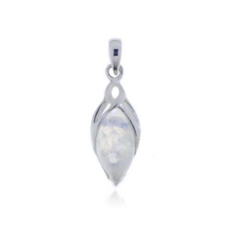 The silver triskel pendant has a cabouchon cut gemstone. The gemstone has an marquise shape with a size of 16 x 8 mm.