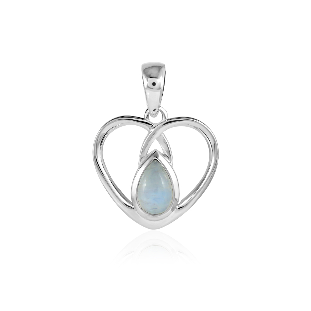 The silver heart shaped pendant has a cabouchon cut gemstone. The shape of the gemstones is drop shaped with a size of 7 x 5 mm.