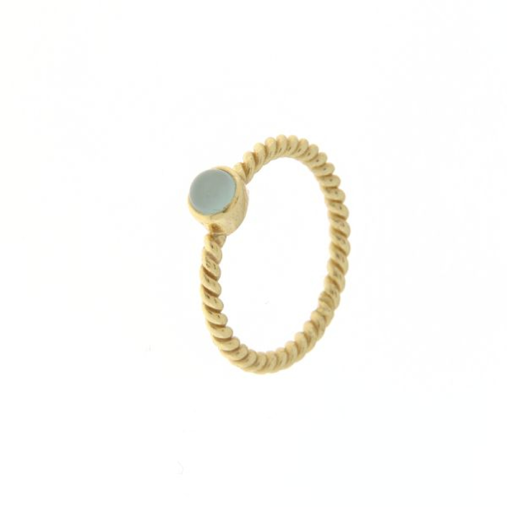 The goldplated on silver has a cabouchon cut gemstone. The gemstone has a round shape with a size of 4 mm.