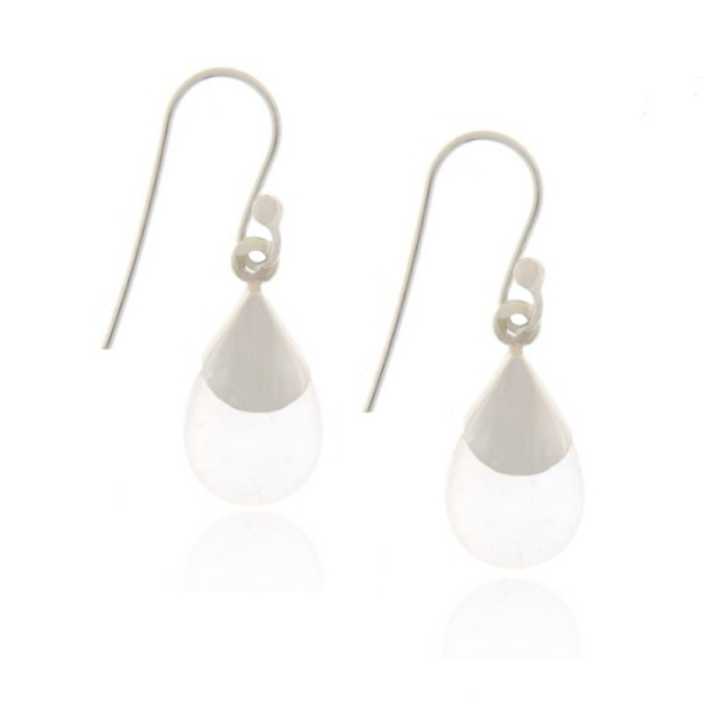 The hanging earring has a cabouchon cut gemstone. The gemstone is drop-shaped with a size of 14 x 10 mm.