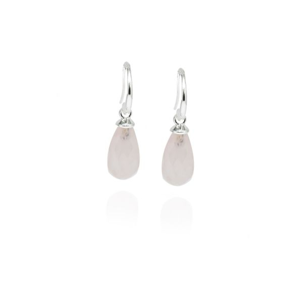 The silver hanging earrings have faceted cut gemstones. The gemstones are drop shaped with a size of 12 x 7 mm.