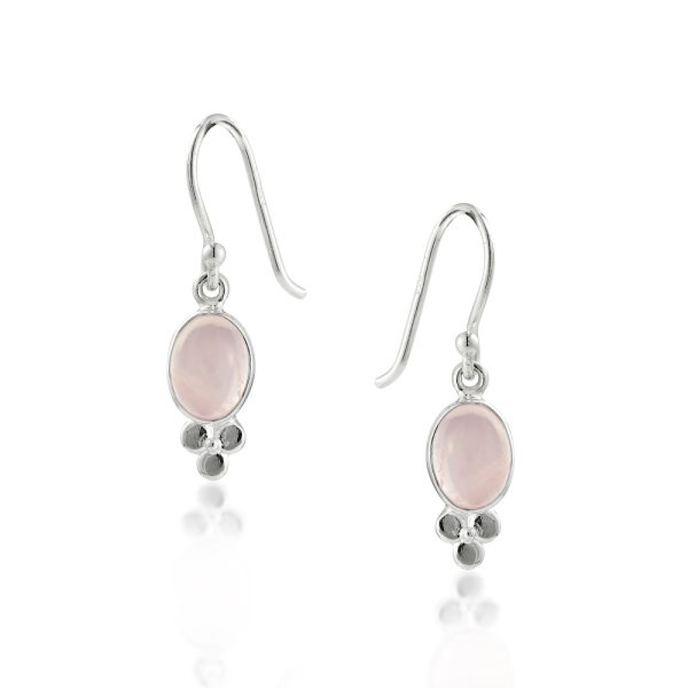 The silver hanging earrings have cabouchon cut gemstones. The shape of the gemstones is oval with a size of 8 x 6 mm.
