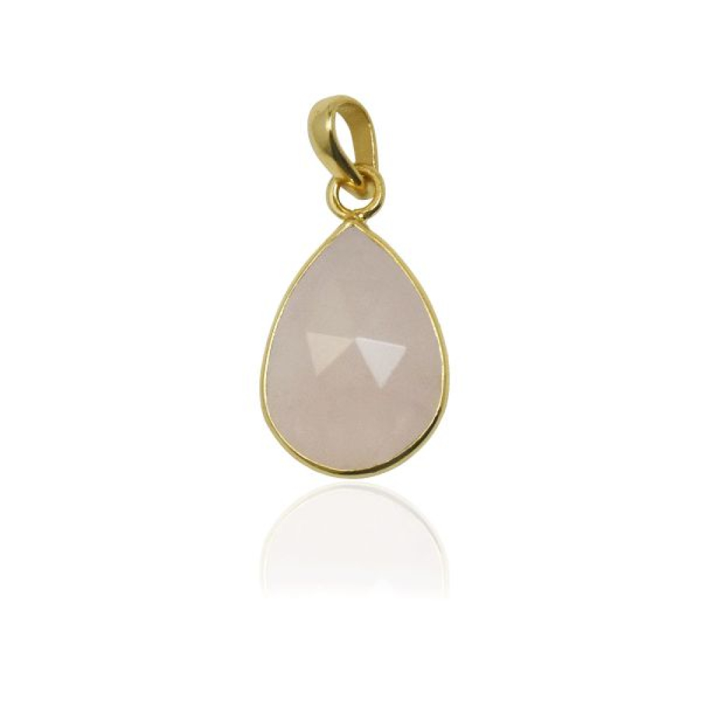 The goldplated pendant has a faceted cut gemstone. The gemstone is drop shaped with the size 14 x 10 mm.