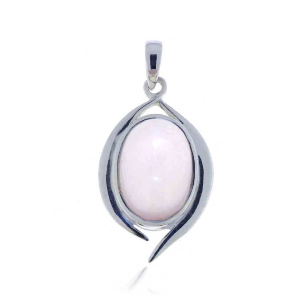 The silver pendant has a cabouchon cut gemstone. The gemstone has an oval shape with a size of 18 x 13 mm.