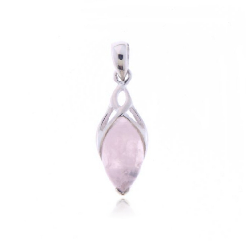 The silver triskel pendant has a cabouchon cut gemstone. The gemstone has an marquise shape with a size of 14 x 8 mm.