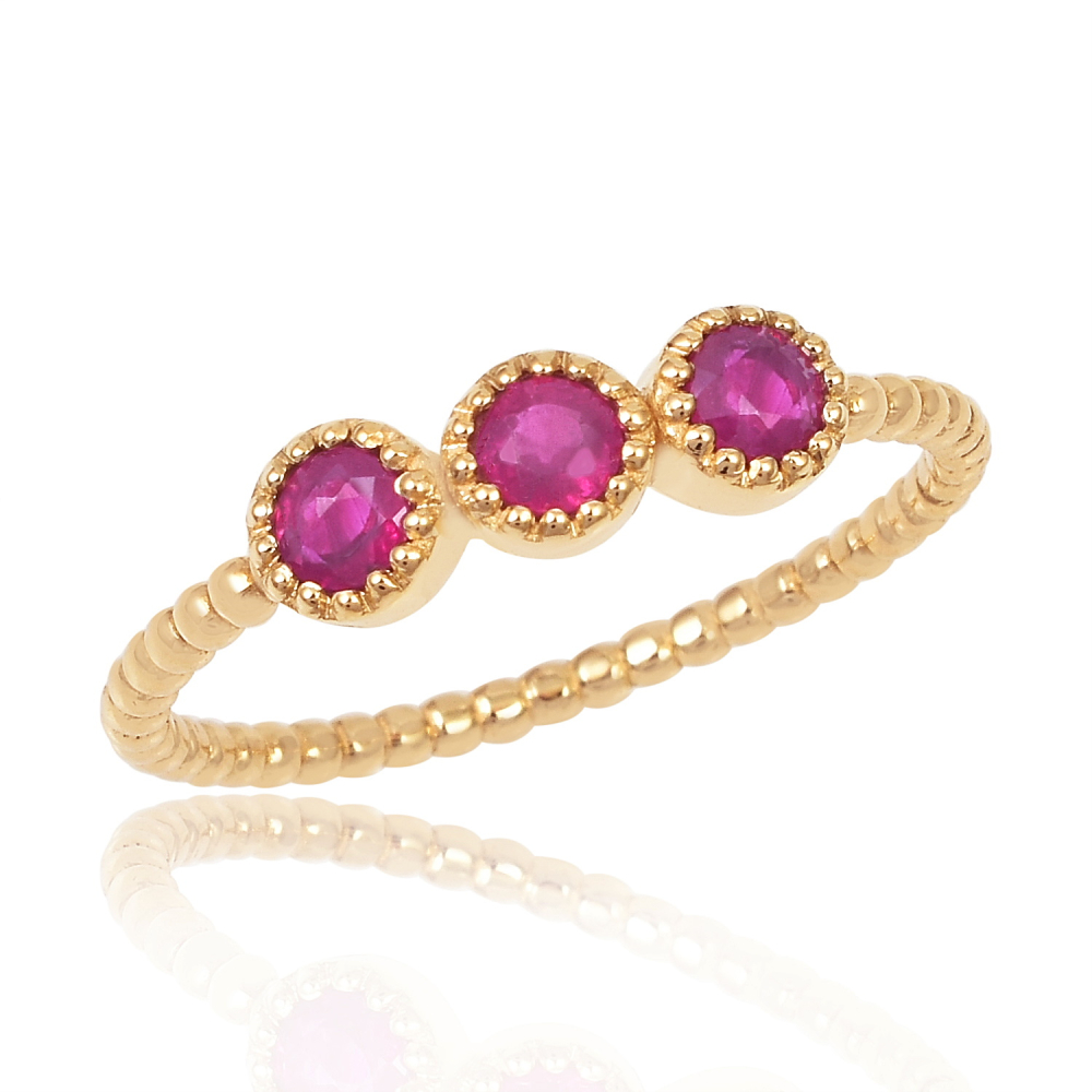 The 14 caraat golden ring has faceted cut gemstones. The shape of the gemstone is round with a size of 3 mm.