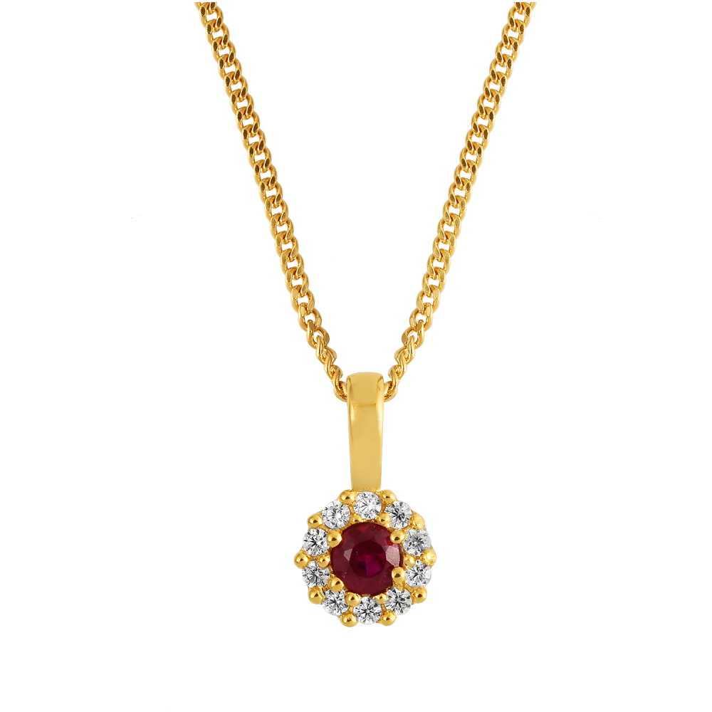 The 14 carat golden pendant has a faceted cut gemstone. The shape of the gemstone is round with a size of 3 mm. Comes without gold chain