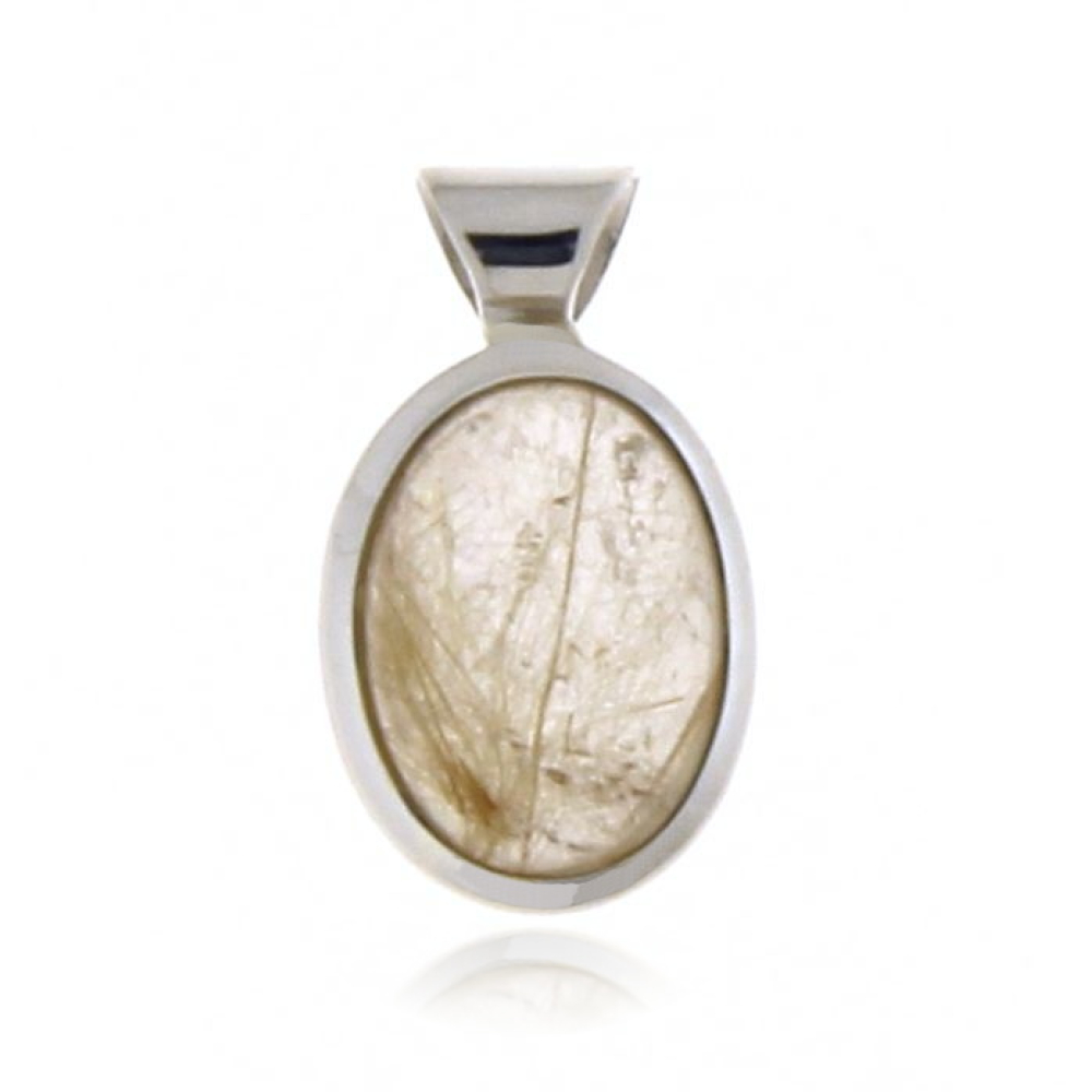 The silver pendant has a cabouchon cut gemstone. The gemstone has an oval shape with a size of 14 x 10 mm.