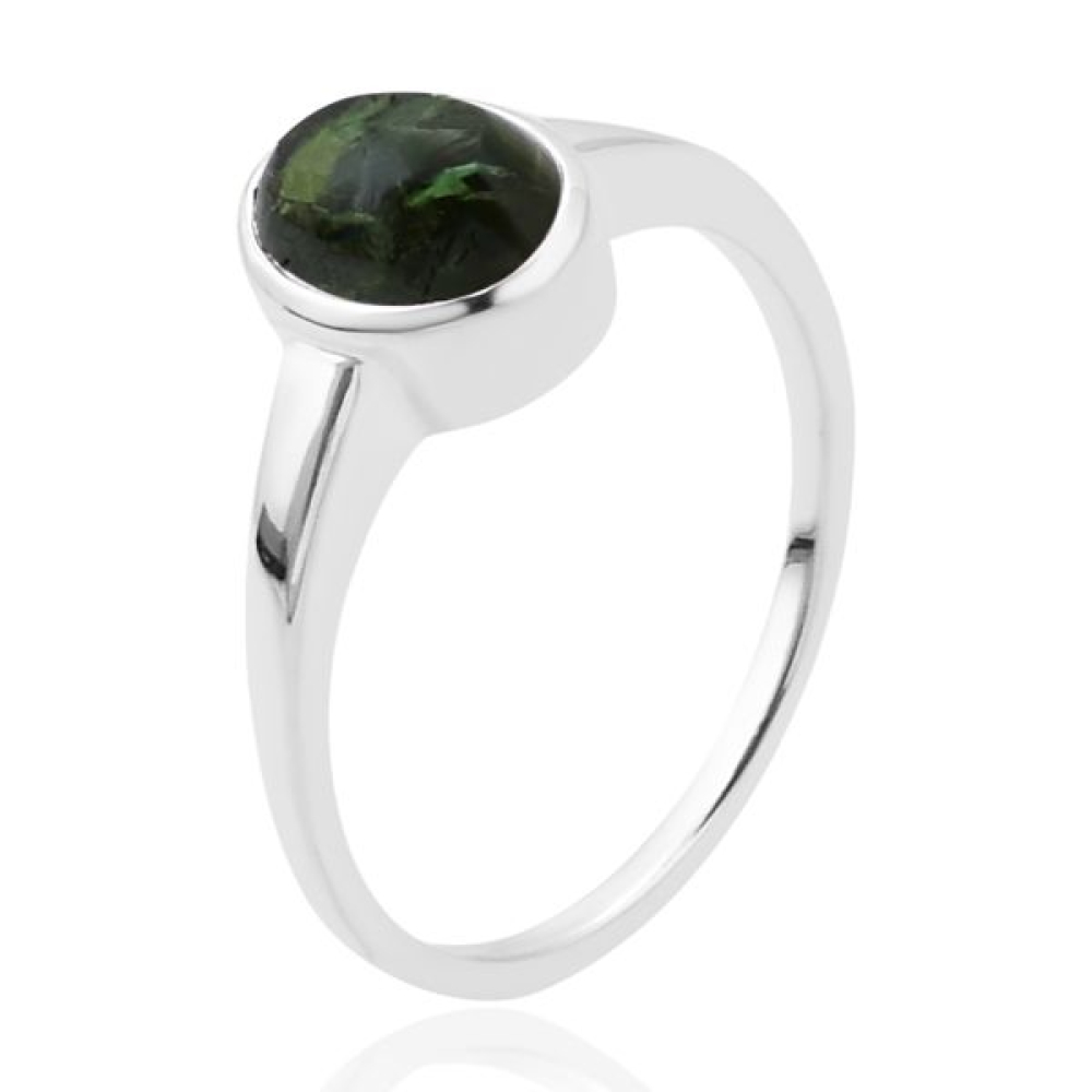 The silver ring has a faceted cut gemstone. The gemstone has an oval shape with a size of 8 x 6 mm.