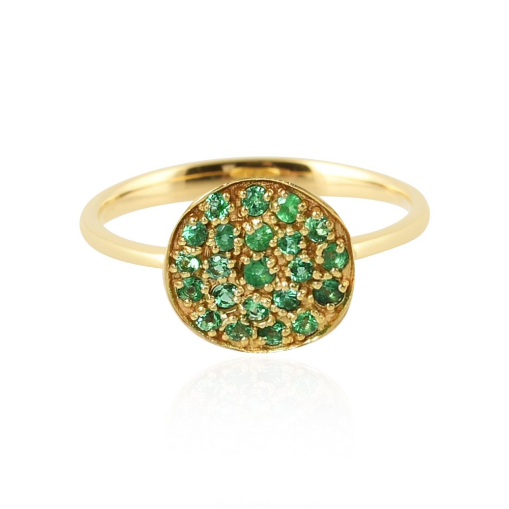 The 14 carat golden ring has a faceted cut gemstone. The shape of the gemstones are round with a size of 1,5 mm.