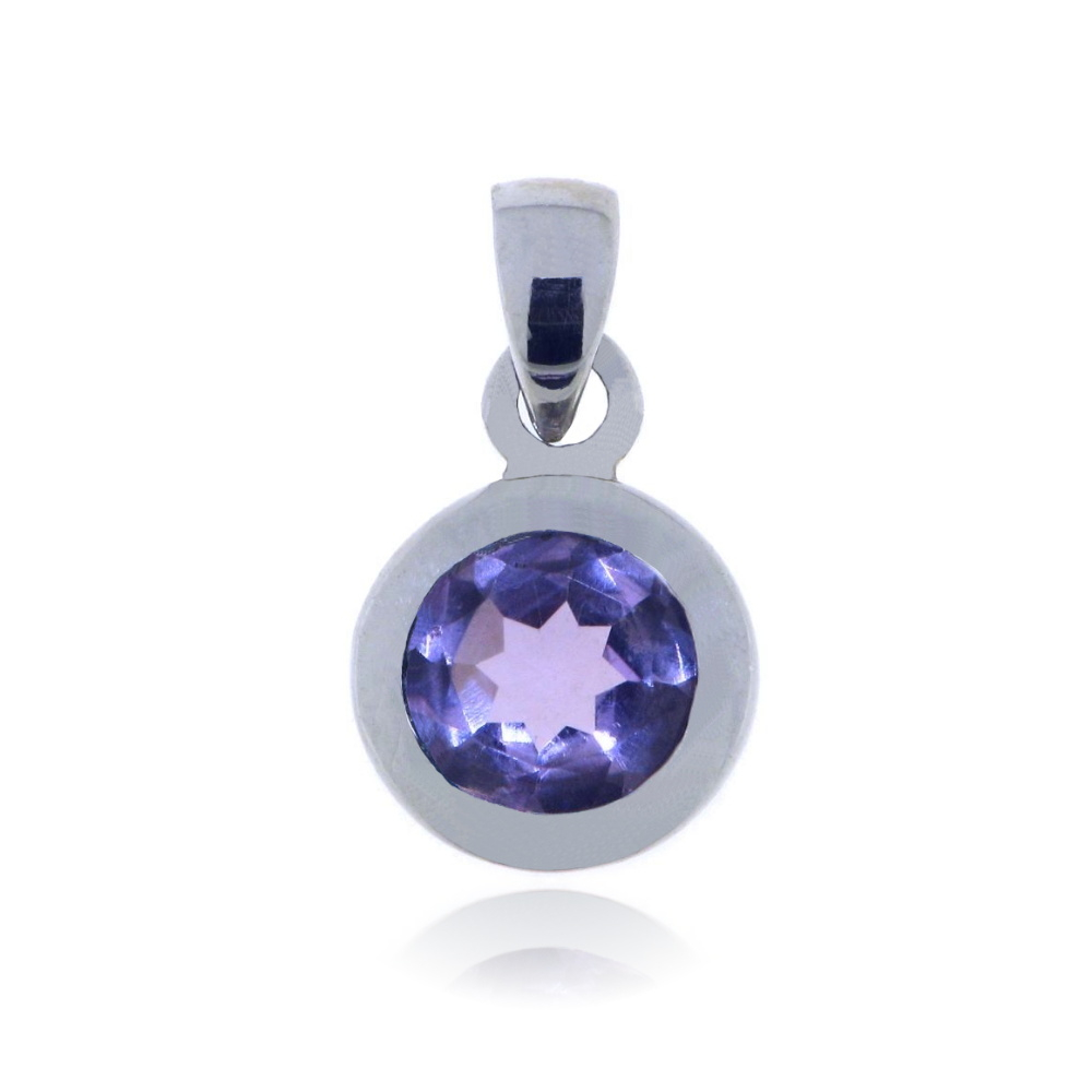 De zilveren hanger heeft een facet geslepen edelsteen. De vorm van de edelsteen is rond met een afmeting van 8 mm.