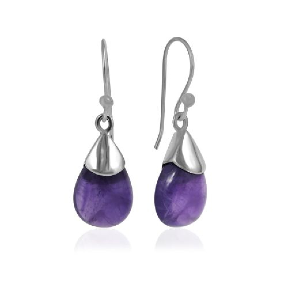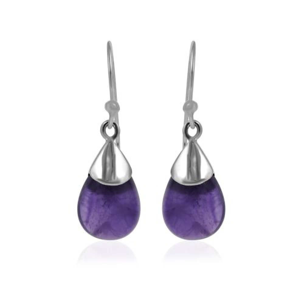 De zilveren oorhanger heeft een cabouchon geslepen edelstenen. De vorm van de edelstenen zijn druppelvormig met afmeting 14 bij 10 mm.