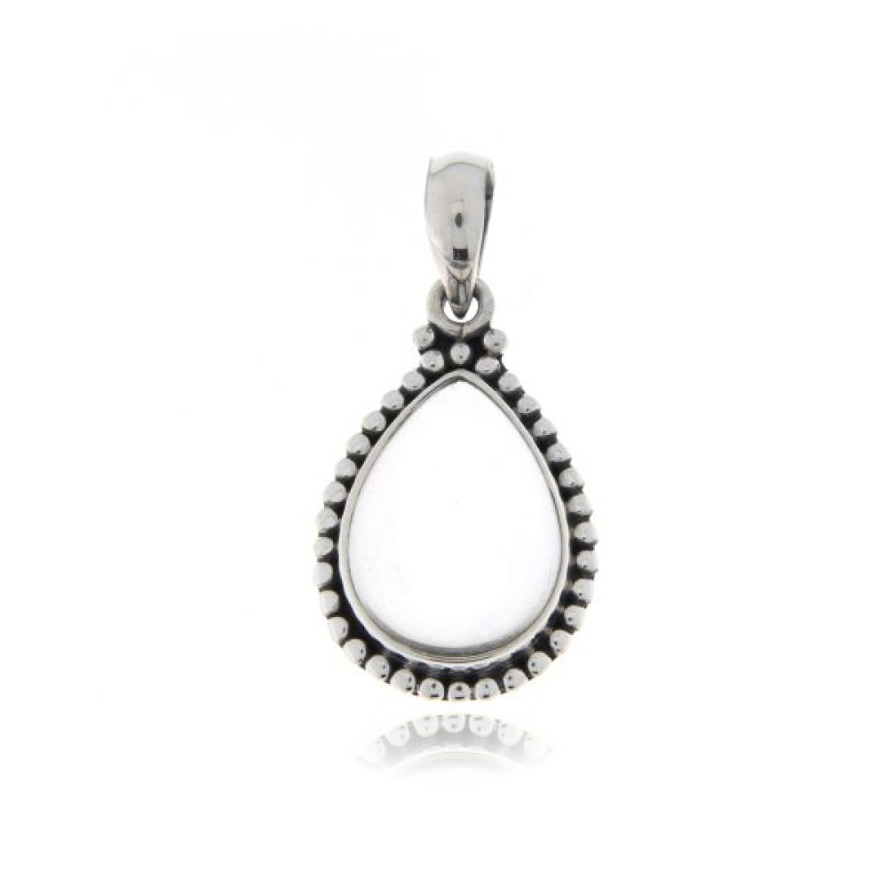 De zilveren hanger heeft een cabouchon geslepen edelsteen. De vorm van de edelsteen is druppelvormig met een afmeting van 16 bij 12mm.
