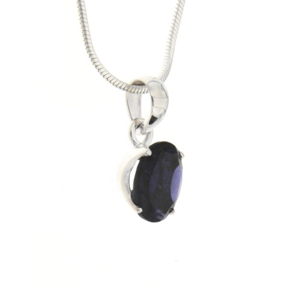 De zilveren hanger heeft een facet geslepen edelsteen. De vorm van de edelsteen is ovaal met een afmeting van 11 bij 9 mm.