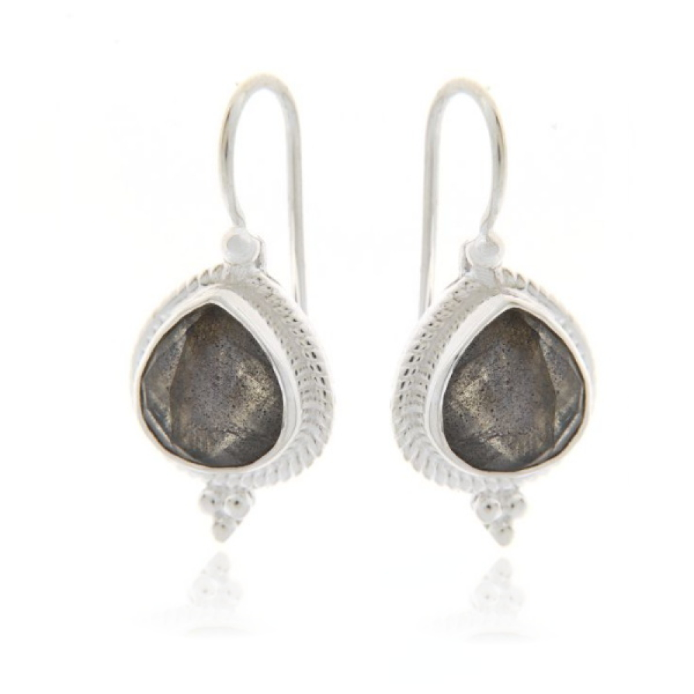 De zilveren oorhangers hebben facet geslepen edelstenen. De vorm van de edelstenen zijn druppelvormig met een afmeting van 10 mm.